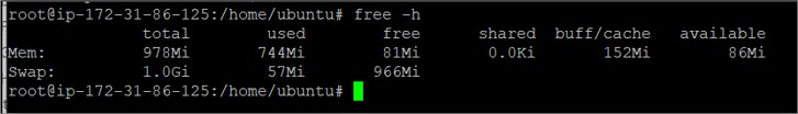 /home/ubuntu$:/fallocate -l 1G swapfile